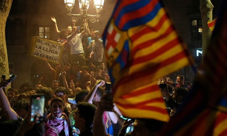Football : le Barça célèbre la Liga, les supporters en liesse